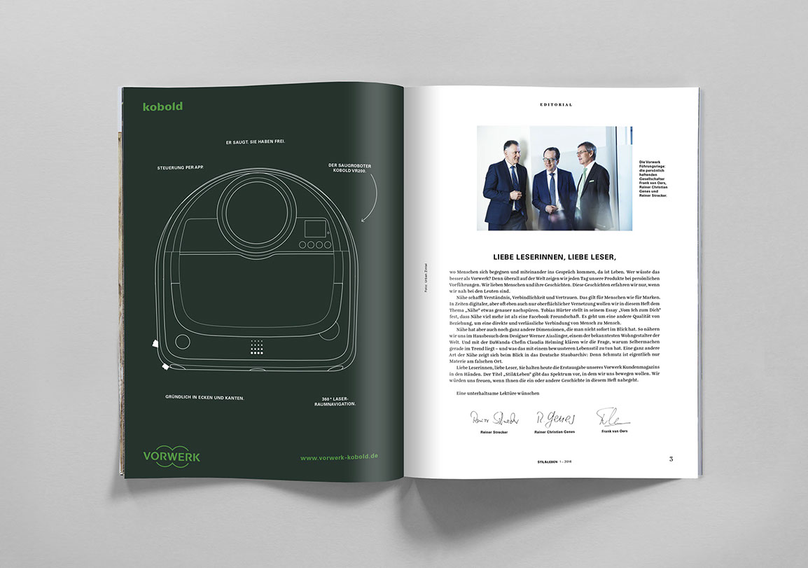 Kundenmagazin für Vorwerk rund um die Produktwelt von Thermomix, Kobold, Vorwerk flooring und Twercs.